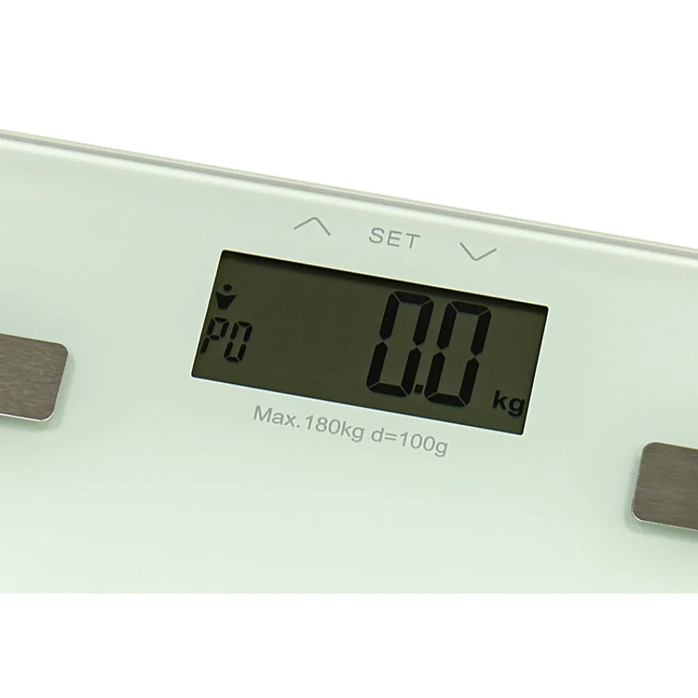 Deze digitale weegschaal kan nauwkeurig uw gewicht meten tot wel 180 kg. Daarnaast is de weegschaal voorzien van een vetpercentage meter, een spierpercentage meter en een hydratatiemeter. Ook is het mogelijk om tot 9 verschillende profielen aan te maken om gegevens zoals uw lengte, gender en leeftijd in op te slaan. De weegschaal is gemaakt van een stevige 6 mm dikke glasplaat, uitgerust met 4 precieze sensoren. Verder is er een heldere display en aan/uit knop aanwezig. Tot slot werkt de weegschaal op batterijen, deze worden standaard meegeleverd.