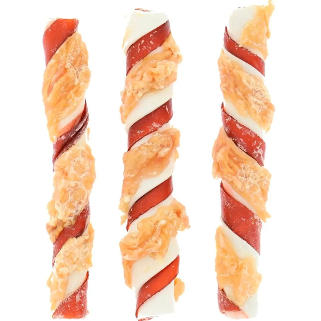 Je hond smult van de heerlijke Rosewood Medium Trio Sticks Hondensnacks. De stevige runderhuid is gewikkeld in smakelijke reepjes gedroogde kip, voor een verantwoord en extra lekker smikkelfestijn.