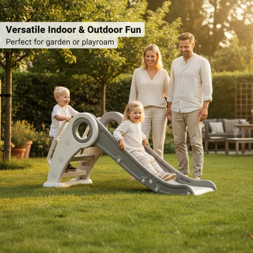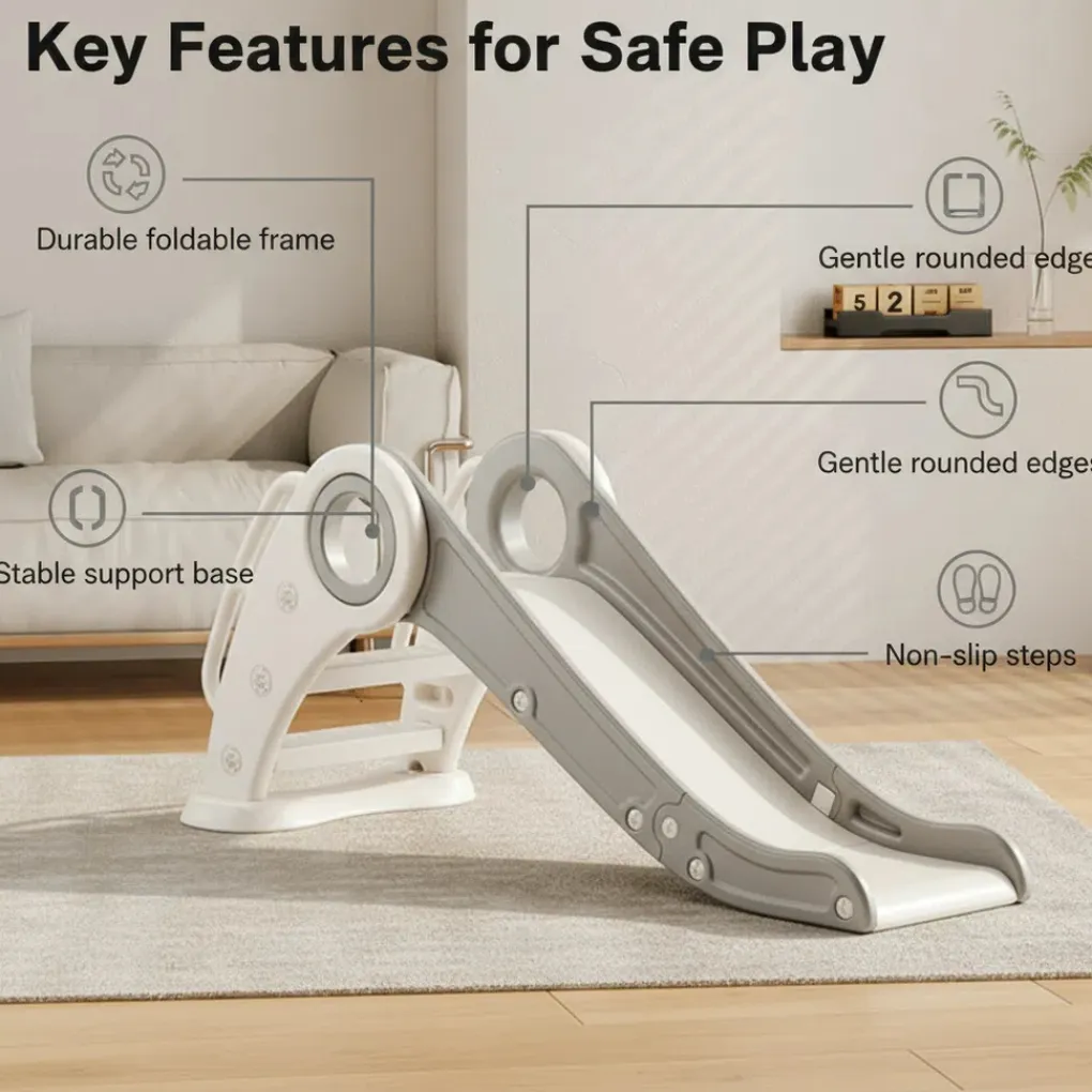 De Glijbaan Peuter Inklapbaar Grijs/Wit is het perfecte speelgoed voor zowel binnen als buiten en biedt kinderen eindeloos speelplezier. De speelse glijbaan is eenvoudig in te klappen en compact op te bergen wanneer deze niet in gebruik is, waardoor de Glijbaan Peuter Inklapbaar ideaal is voor kleinere ruimtes. Hoe gebruik je de Glijbaan Peuter Inklapbaar: Het opzetten van de Glijbaan Peuter Inklapbaar is eenvoudig en intuïtief. De glijbaan kan snel worden uitgeklapt en is direct klaar voor gebruik. Plaats de glijbaan op een vlakke ondergrond en zorg ervoor dat er voldoende ruimte is rondom de glijbaan voor veilig gebruik. Na het spelen kun je de glijbaan eenvoudig weer inklappen en opbergen, wat vooral handig is in kleinere ruimtes. Eigenschappen: • Russle Glijbaan Peuter Inklapbaar • Kleur: Wit/Grijs • Afmetingen: 126 x 33 x 55 cm • Platformhoogte: 38 cm • Materiaal: Duurzaam kunststof • Gewicht: 7 kg • Geschikt voor kinderen van 1 tot 4 jaar • Maximale belasting: 30 kg • Inclusief antislip treden voor extra veiligheid. De voordelen van de Glijbaan Peuter Inklapbaar: • Eenvoudig op te bergen dankzij het inklapbare ontwerp • Lichtgewicht en gemakkelijk te verplaatsen • Stevig en duurzaam materiaal voor langdurig gebruik • Ideaal voor zowel binnen- als buitengebruik • Helpt kinderen met het ontwikkelen van motorische vaardigheden en balans. Waarschuwing: Gebruiken onder direct toezicht van een volwassene. Plaats de glijbaan op een stevige ondergrond en zorg voor een veilige omgeving.