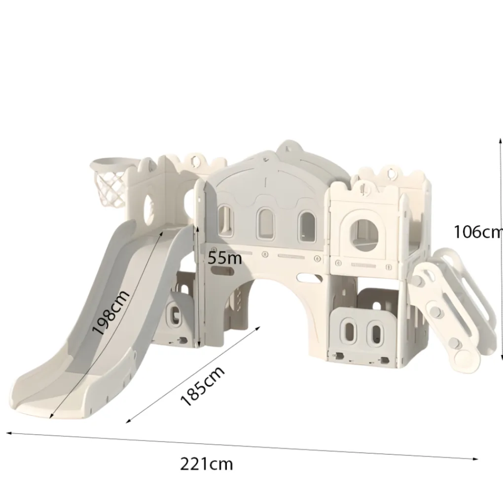 • Bevat een loopbrug, een verrekijker, een glijbaan en een basketbalring (inclusief bal)