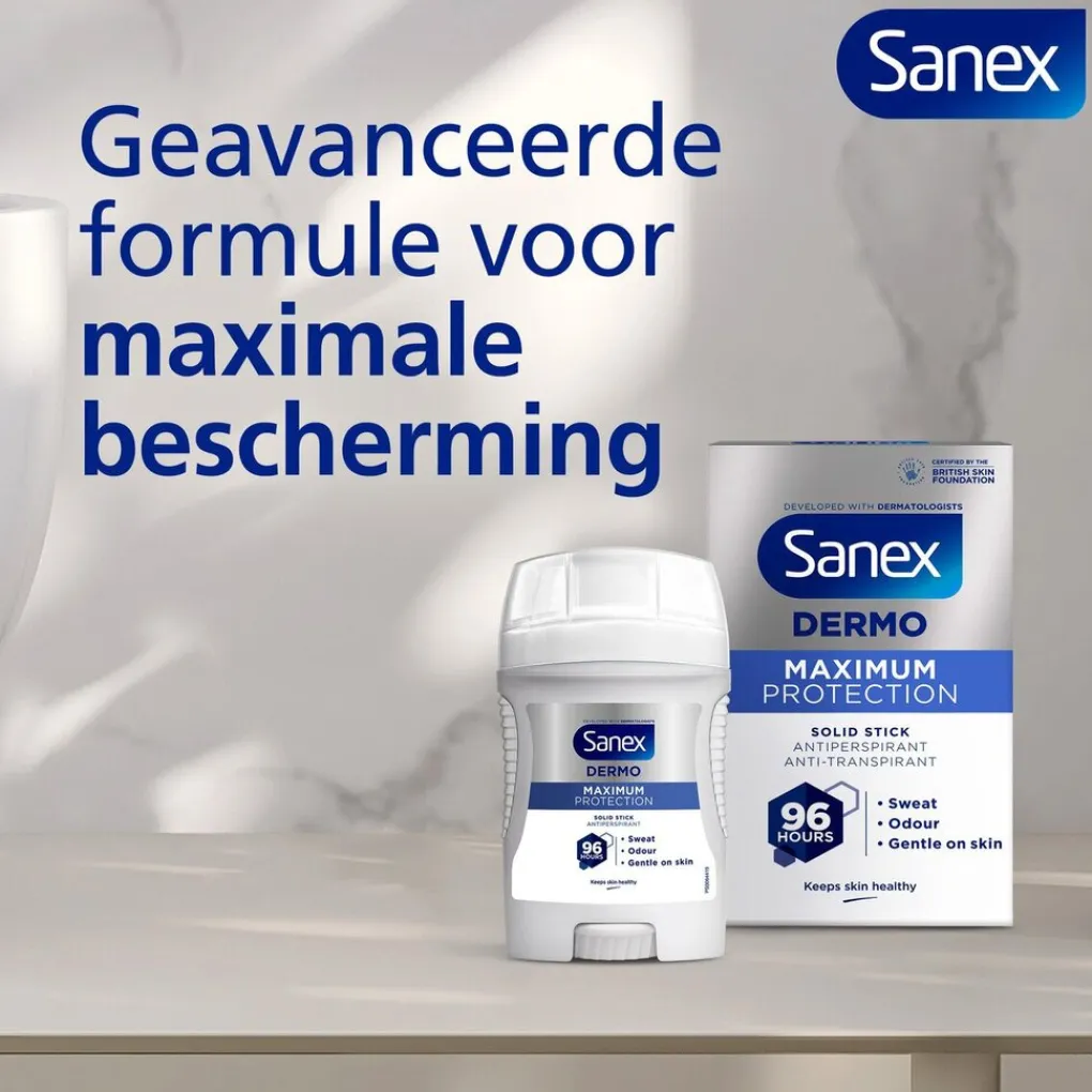 De deo stick heeft een zeer effectieve formule die is ontwikkeld in samenwerking met dermatologen en is Sanex’ sterkste antitranspirant die langdurige bescherming biedt tegen zweet en geur en tegelijkertijd zacht is voor je huid.