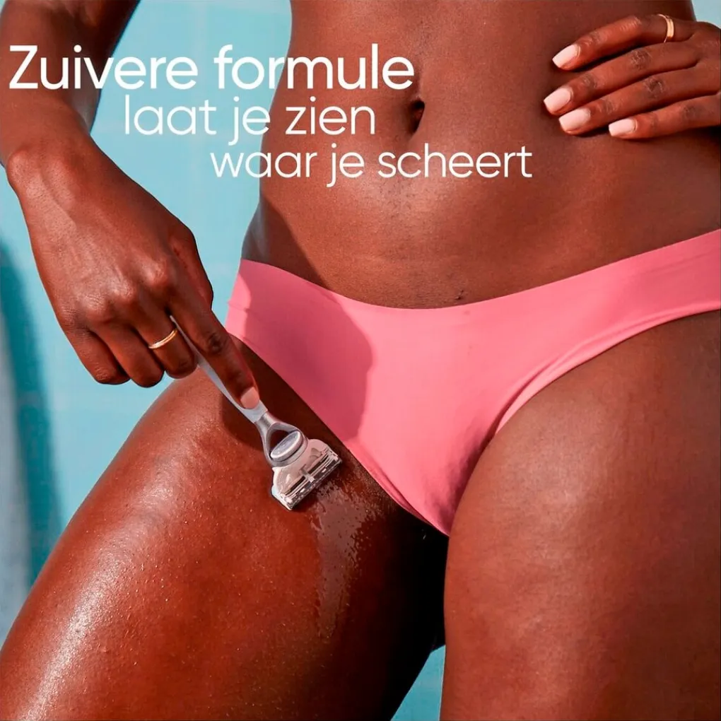De Satin Care Huid & Schaamhaar 2-In-1 Reiniger en Scheergel gebruik je tijdens het scheren voor een beschermende laag om irritatie te voorkomen. Of gebruik hem dagelijks als een zachte reiniger.