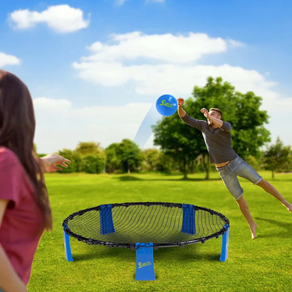 Spyderball spelers kunnen zich rondom het hele net bewegen, er zijn daarbij geen grenzen. Het serverende team blijft serveren totdat de tegenpartij een punt wint en de opslag naar hen gaat. Je kunt spyderball het best tot 21 punten spelen. Naast een leuk spel is slam ball ook de perfecte manier om conditie, behendigheid en snelheid te trainen.