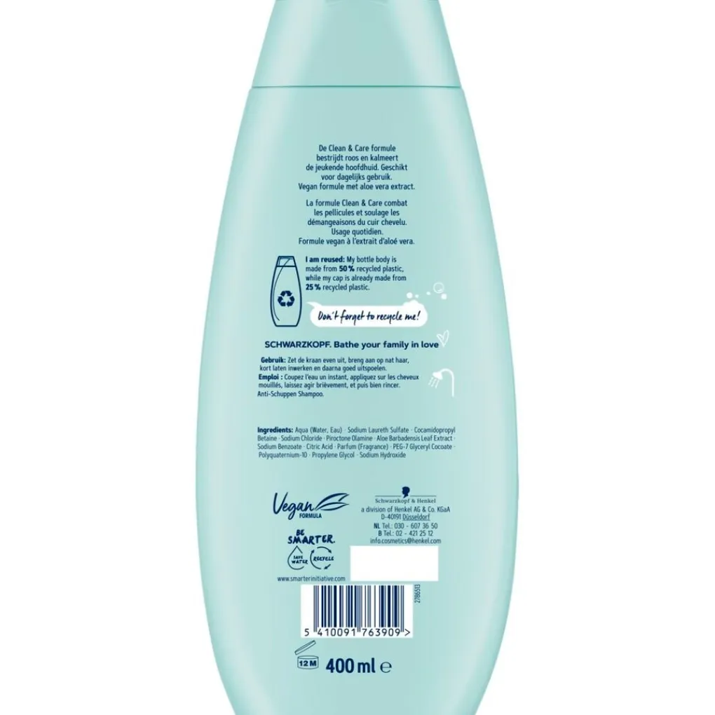 Schwarzkopf Antiroos Shampoo bevat aloë vera-extract en is geschikt voor dagelijks gebruik.