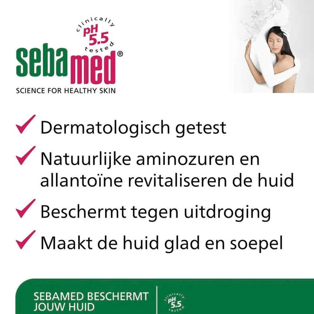 • Sebamed is geschikt voor de gevoelige huid. De huidneutrale pH-waarde van 5.5 versterkt de weerstand van de huid, waardoor de kans op irritatie, infectie en allergie vermindert. Zo blijft de huid in topconditie