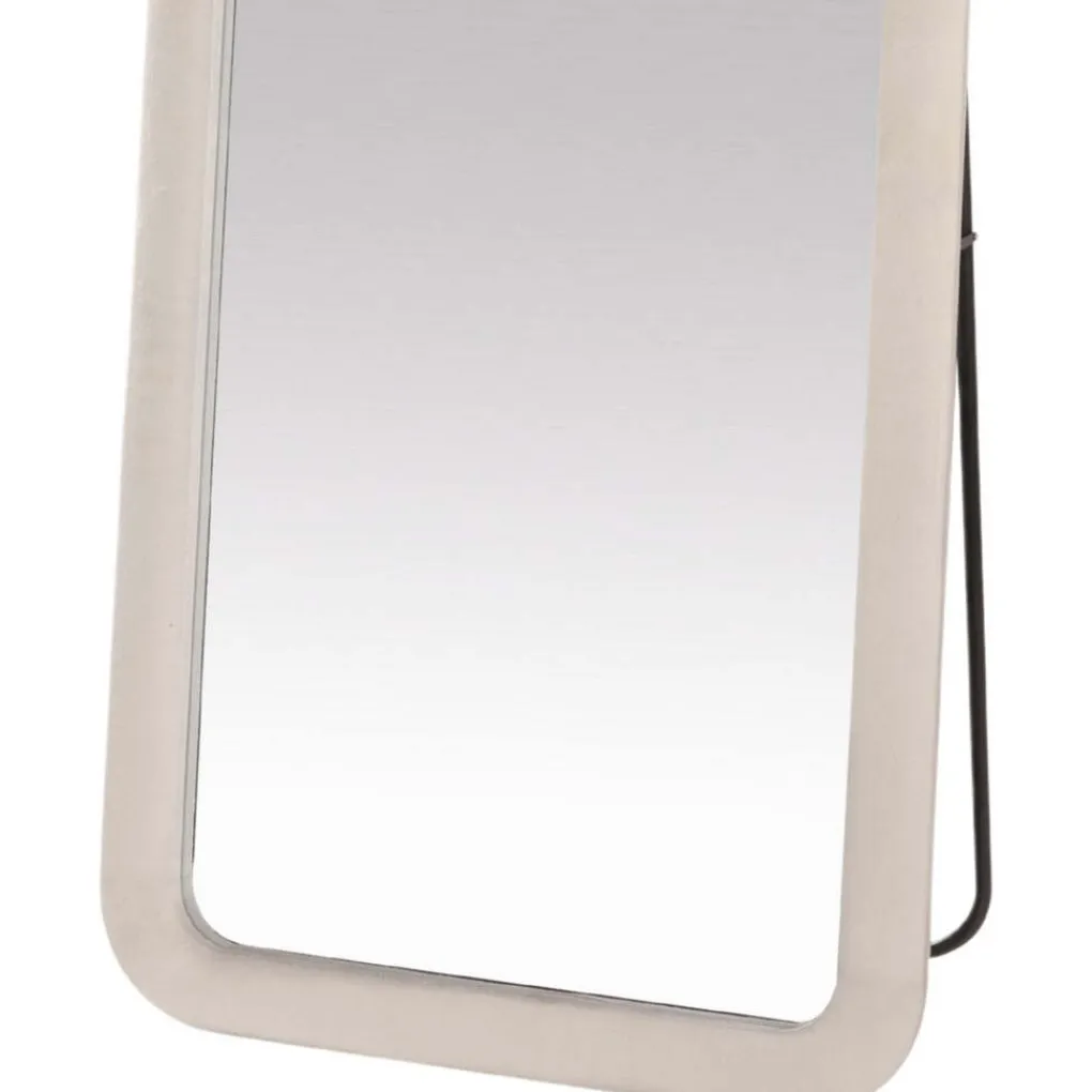 De spiegel is bekleed met een zachte suede velvet stof en heeft een solide spiegeloppervlak van hoogwaardig glas. De combinatie van spiegel en katoenen bekleding zorgt voor een uniek design dat elke ruimte verfraait.