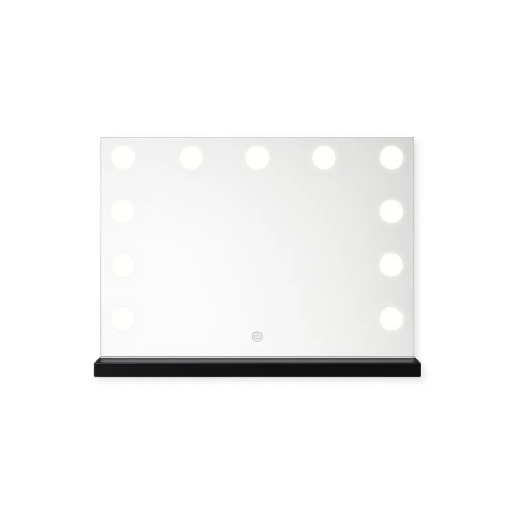 De spiegel is uitgerust met 12 heldere LED-lampen die gelijkmatige verlichting over het oppervlak verspreiden, waardoor perfecte zichtbaarheid van elk detail van je make-up routine wordt gegarandeerd.