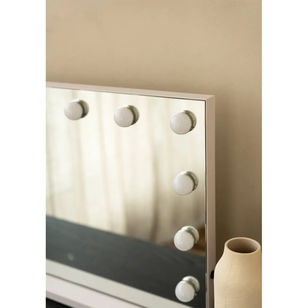 Het slanke witte frame en het compacte formaat (46x58cm) maken het een moderne toevoeging aan elke slaapkamer, kaptafel of kleedruimte.