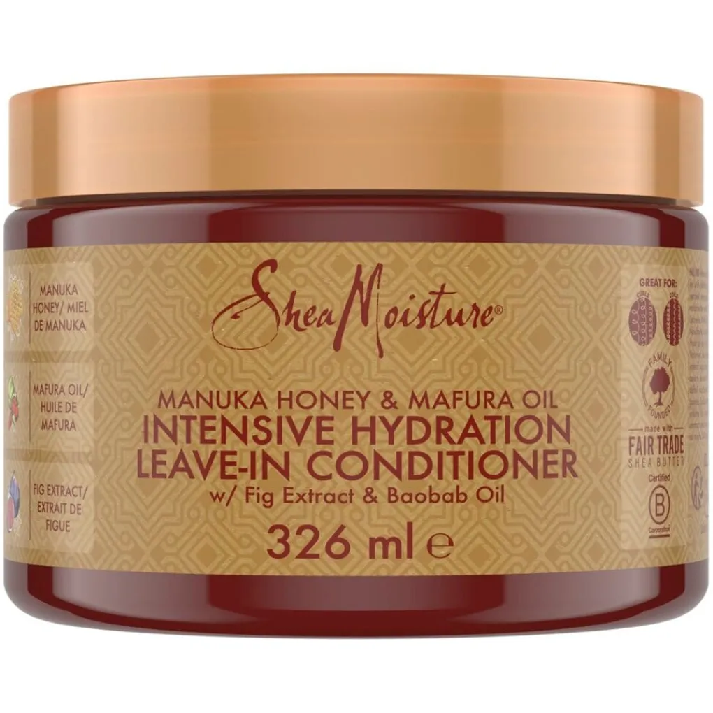 SheaMoisture Manuka Honey & Mafura Oil Intensief Hydraterende Leave-In Conditioner helpt beschadigd en droog haar herstellen met een krachtige hydratatieboost.