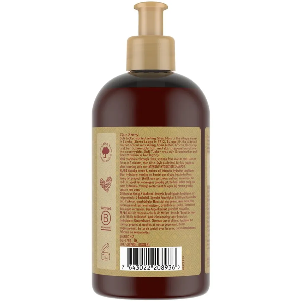 SheaMoisture Manuka Honey & Mafura Oil Intensive Hydration Conditioner is speciaal ontwikkeld voor krullend haar. De conditioner biedt hydratatie, voeding en herstel aan beschadigd, droog haar.