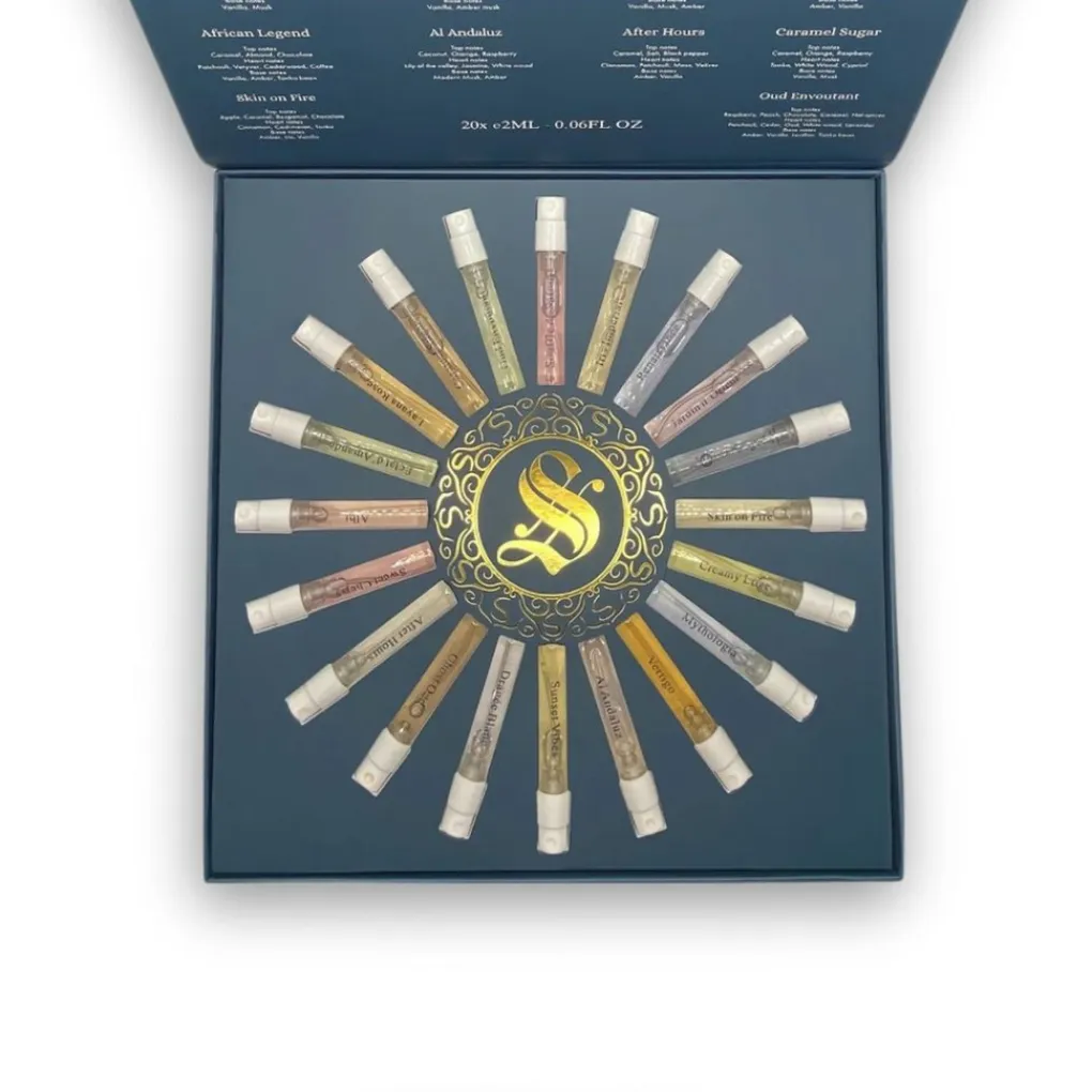Ontdek de royale allure van Signature Royale met de nieuwe Discovery Set. Deze exclusieve collectie omvat de 20 creaties, elk gevat in een premium glazen verstuiver en gehuld in een luxueuze verpakking.