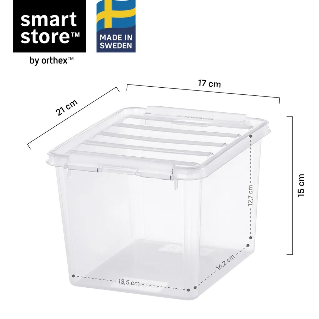 Orthex is een toonaangevende Scandinavische producent van duurzame, praktische huishoudelijke producten die het dagelijks leven van de consument gemakkelijk maken. Orthex Group investeert in de kwaliteit, veiligheid en design van zijn producten, evenals in duurzame productiemethoden. Hun Smartstore-collectie is een uniek concept van opbergoplossingen voor zowel thuisgebruikers als professionals en staat voor uitmuntendheid in uitvoering, hoogwaardige kwaliteit, strak Scandinavisch design en innovatie. De collectie bestaat uit verschillende series met een breed scala aan opbergboxen, dessins, kleuren en accessoires.Deze ruime opbergboxen met deksel zijn perfect voor het opruimen en organiseren van spullen in een kast, gang of berging. Of je nu kiest voor een opbergbox voor de tuin om tuingereedschap netjes op te bergen of een opbergmand voor binnenshuis, je kunt altijd gemakkelijk de inhoud zien en daardoor alles goed indelen per categorie. Voor extra overzicht kun je gebruik maken van de labelhouders die je er los bij kunt bestellen. Deze universeel inzetbare opbergdozen met deksel en opbergboxen met deksel zijn gemaakt van stevig transparant kunststof. De structuur in de deksel zorgt ervoor dat de bakken goed op hun plaats blijven als ze worden opgestapeld. Ze blijven ook goed vastzitten door de stevige zwarte kleppen. Er zijn 8 verschillende varianten beschikbaar. Opbergen met Orthex is daarom altijd een goed idee!