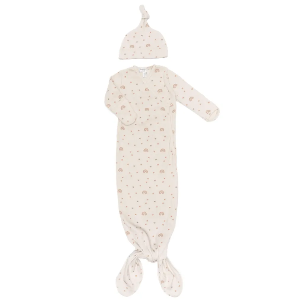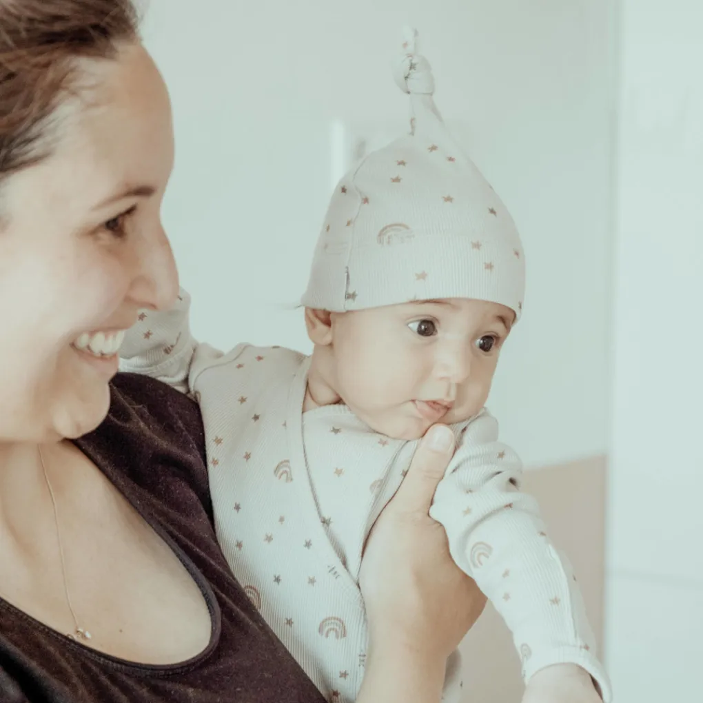 Deze slaapzak is 60 cm lang en dus geschikt voor pasgeborenen van 0 tot 3 maanden. De warme Milky Rust kleur met een schattig regenboogmotief geeft een vrolijke en moderne uitstraling in de babykamer. Zo combineer je stijl en gemak in één product.