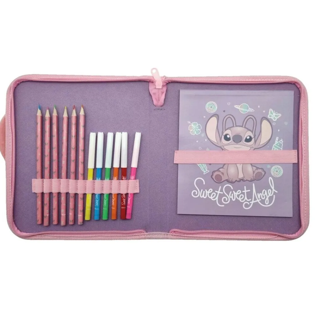 Deze toffe Stitch Kleurset zit in een mooie pluchen etui. Hierin vind je vijf potloden, vijf stiften en een notitieboekje. Geschikt voor kinderen vanaf 3 jaar.