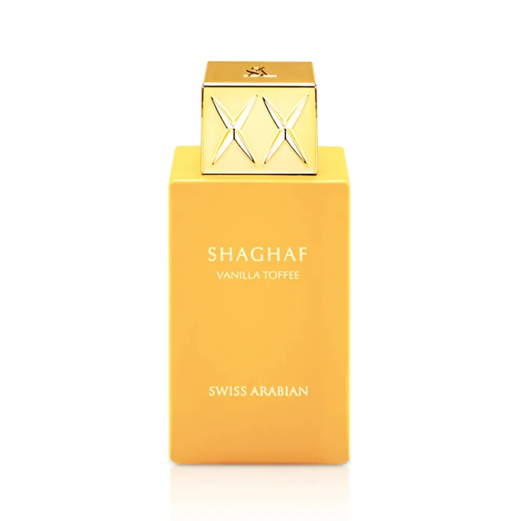 Vanilla Toffee uit de Shaghaf-collectie van Swiss Arabian is een onweerstaanbare gourmand-parfum die de zintuigen omhult in warmte en zoetheid. De opening verrast met karamelachtige toffee en rijke koffie, terwijl het hart van romige melk, exotische dadels, en kardemom harmonieus samenkomt met walnoot en zachte vanille. De basis laat een luxueuze nasleep achter van vanillekaviaar, bruine suiker, benzoïne, tonkaboon, muskus en houtachtige nuances. Een perfecte keuze voor wie houdt van elegante, zoete verwennerij.