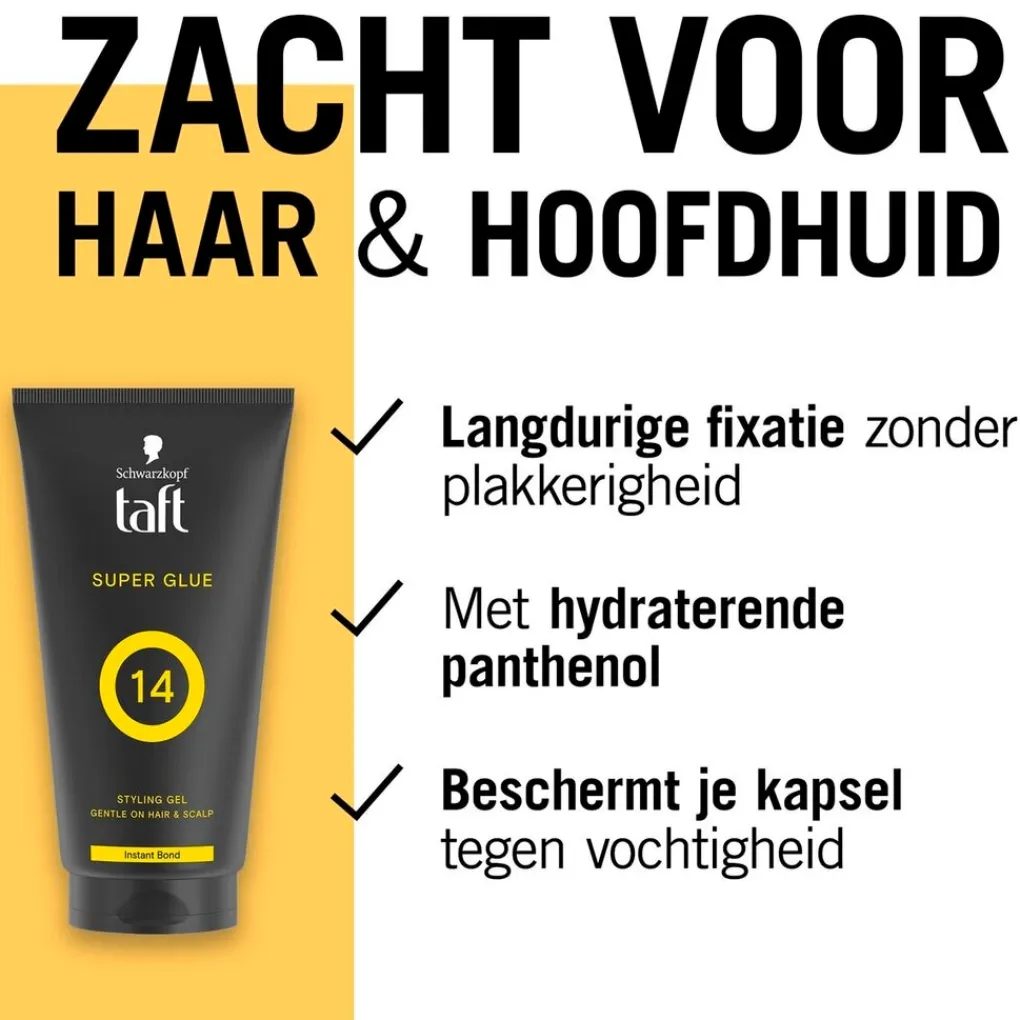 Je bent altijd in controle met de Schwarzkopf Taft Super Glue Level 14 Haargel Tube! De stylinggel met Instant Fixing technologie geeft je een super glue hold. Het is gemakkelijk uit te wassen en verzwaart je haar niet.