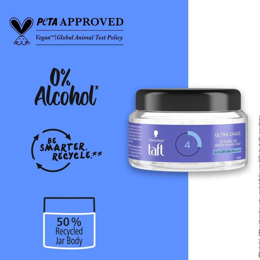 Je bent altijd in controle met de Taft Ultra Chaos Power Hold 4 Styling Gel! De stylinggel is speciaal voor het creëren van chaotische en warrige kapsels.