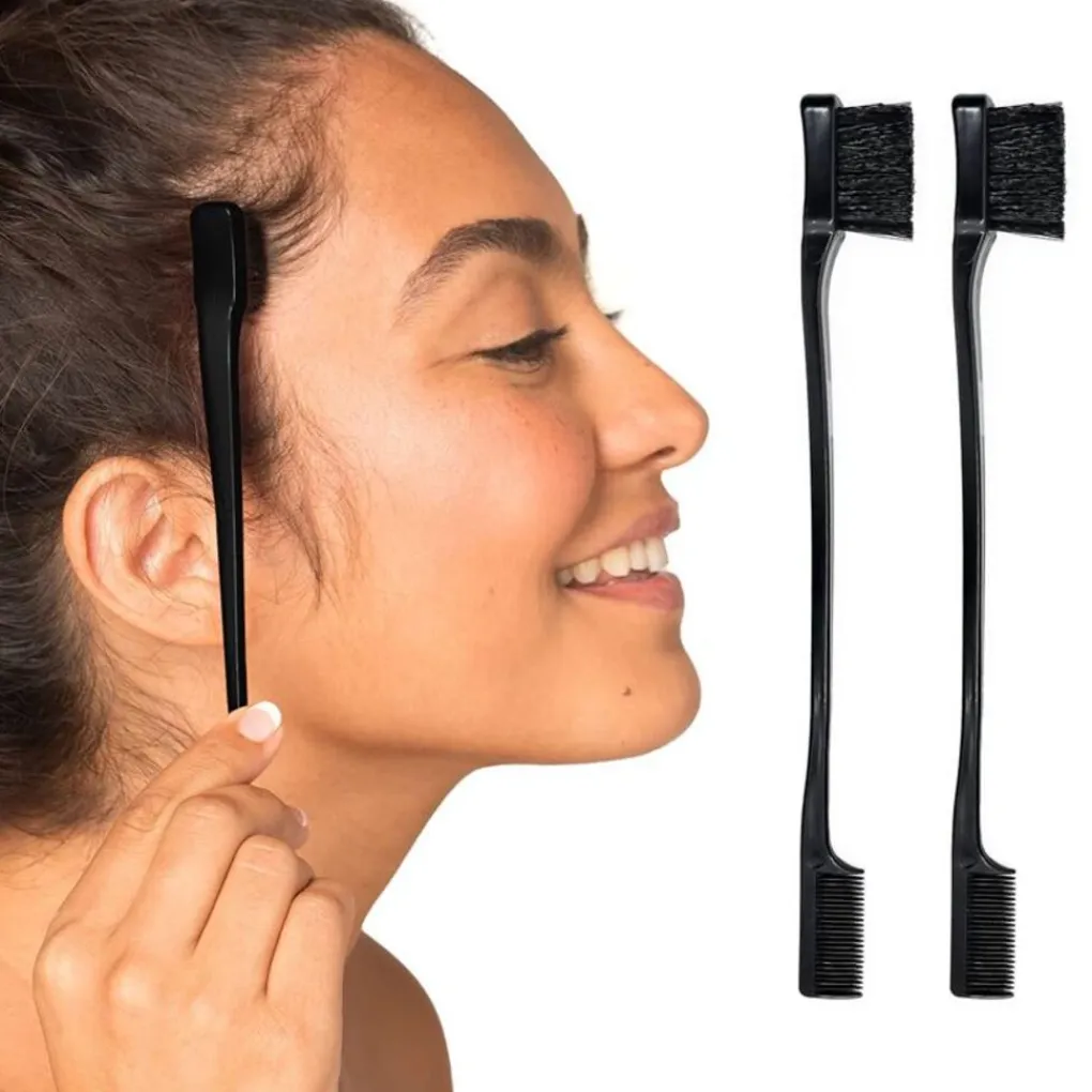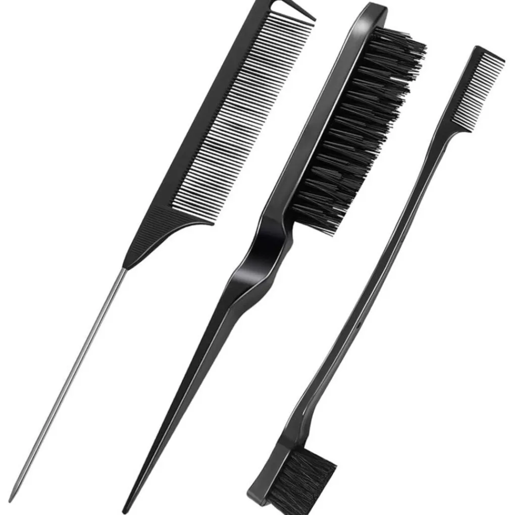 Deze set van TBC bevat 3 essentiële haarverzorgingsproducten: een dubbelzijdige randborstel, een borstel met varkensharen en een puntkam. VOORDELENDubbelzijdige randborstel: perfect voor het gladmaken van randen en weerbarstig haar. Deze borstel zorgt ervoor dat je haar er bij elke gelegenheid verzorgd en elegant uitziet. Je kunt de fijne borstel ook gebruiken voor je wimpers en wenkbrauwen.Borstel met varkenshaar: verdeelt haarwax gelijkmatig van de wortels tot de punten, waardoor je haar gladder en beter in model blijft.Puntkam: Ideaal voor het snel verdelen en scheiden van het haar. Werkt perfect in combinatie met een föhn voor professionele resultaten thuis.Belangrijkste kenmerken: Onmisbaar voor het stylen van pony’s, haarlijnen, randen, wenkbrauwen en wimpers en voor het maken van scherpe scheidingen. Voeg haarwax of gel toe voor nog mooiere kapsels.Compact en reisvriendelijk ontwerp: gemakkelijk mee te nemen voor onderweg. Deze set neemt minimale ruimte in beslag in uw handtas of rugzak, waardoor hij perfect is voor reizen of zakenreizen.De verpakking bevat 3 sets1 puntkam1 kantborstel1 teasingborstel