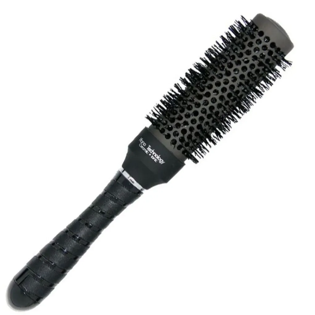 Keramische ionische ronde borstel van Nano Technology®. Deze ronde borstel is een must-have voor dagelijkse haarstyling. De borstel is gemaakt van hoogwaardige materialen met keramische en ionische eigenschappen, wat zorgt voor een sterke en duurzame borstel. De keramische eigenschappen zorgen ervoor dat de warmte gelijkmatig wordt verdeeld tijdens het föhnen. De ionische eigenschappen stoten water af, waardoor de droogtijd wordt verkort en het haar gezonder en glanzender wordt. Tegelijkertijd heeft de borstel een ergonomische, comfortabele handgreep.De ronde borstel heeft een diameter van 32 mm en is daarom geschikt voor lang haar tot op de schouders en medium krullen. Kan zowel worden gebruikt om het haar te krullen als om het glad te maken.