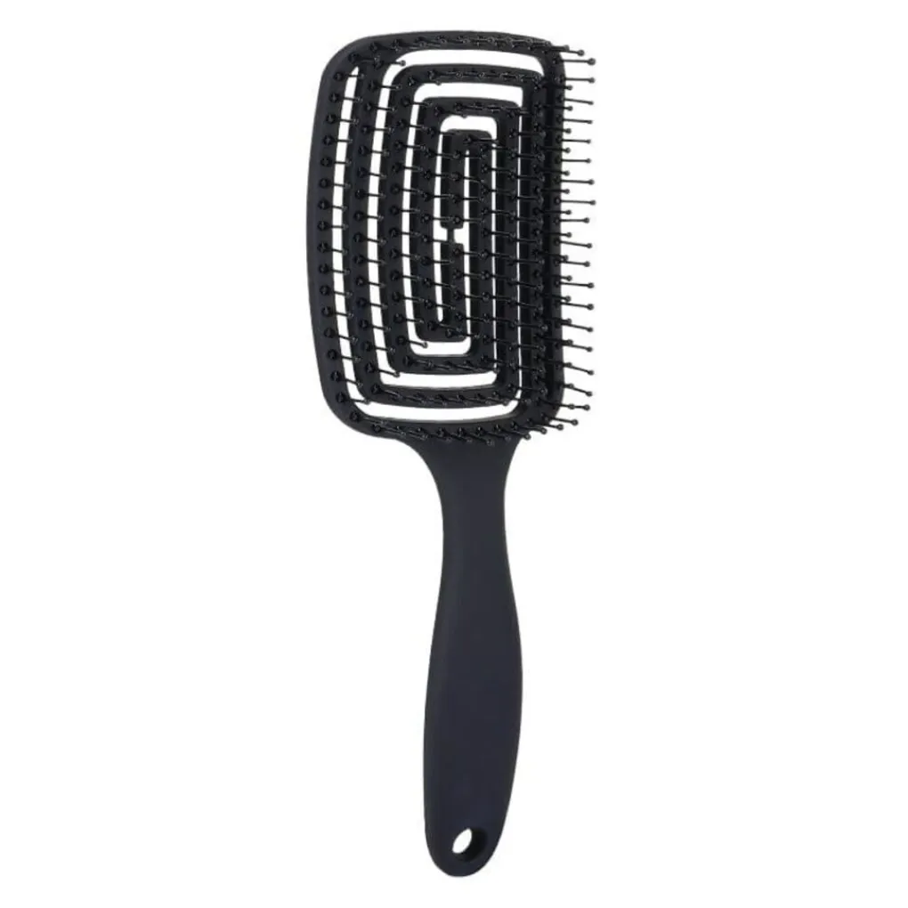 Ontdek het geheim achter moeiteloos stylen en glanzend haar met de TBC detangling Hollow haarborstel in zwart. Deze innovatieve borstel is de ultieme oplossing voor dagelijkse haarproblemen, van vervelende klitten tot tijdrovend stylen. Het unieke holle ontwerp zorgt voor een optimale luchtstroom voor sneller en efficiënter föhnen, terwijl het haar minder beschadigd raakt en zijn natuurlijke glans behoudt.Het strakke ontwerp combineert functionaliteit met elegantie, waardoor het een onmisbaar accessoire is in elke schoonheidsroutine. De borstel is voorzien van zachte, flexibele borstelharen die de haarlokken gemakkelijk scheiden zonder te trekken of te breken, wat zorgt voor een soepele en pijnloze ontklittende ervaring. Of je nu dik, krullend, dun of steil haar hebt, deze borstel past zich probleemloos aan alle haartypes en texturen aan.Het ergonomisch ontworpen handvat zorgt voor een comfortabele en veilige grip, waardoor je elke beweging onder controle hebt terwijl je je haar in model brengt en glad maakt. Door het lichte gewicht is hij ideaal voor gebruik thuis en onderweg, zodat je altijd en overal de perfecte look kunt creëren.