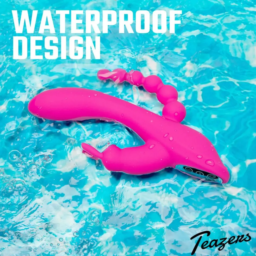 Deze dubbele rabbit vibrator geeft jou intense stimulaties! De vibrator stimuleert namelijk tegelijkertijd je clitoris, perineum, G-spot én geeft je intense anale stimulatie. De vibrator is voorzien van 10 krachtige vibratiestanden welke je eenvoudig kunt bedienen met de knoppen aan de onderzijde. Kies uit 3 vibratiestanden en 7 snelheden. Ook is de vibrator geheel waterproof voor veilig gebruik in bad of onder de douche en laad je hem eenvoudig weer op met de meegeleverde USB-kabel. Het materiaal is van ultra zacht, lichaamsveilig siliconen voor een comfortabel gevoel. Reinig de vibrator na elk gebruik met lauwwarm water en een toycleaner en dep droog met een pluisvrije doek.