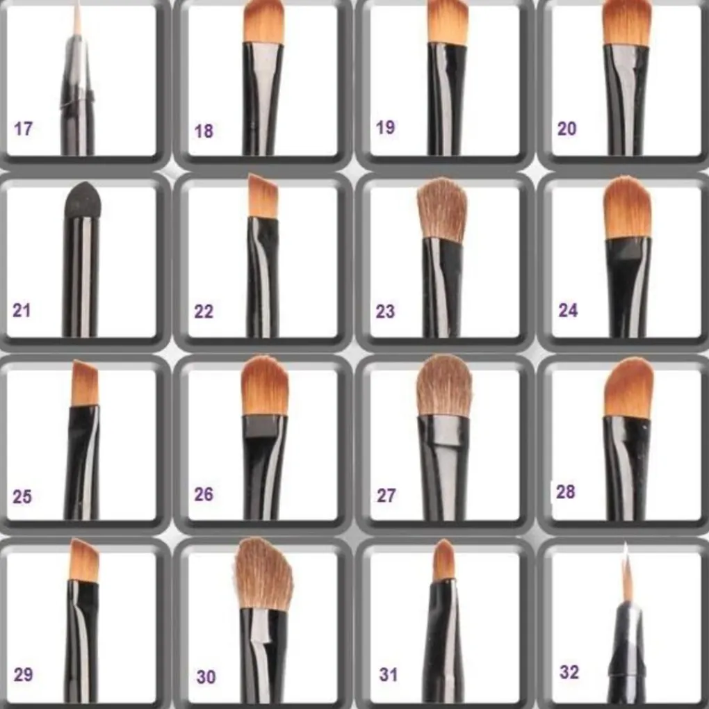 - Penseel 15, 22, 25, 29 zijn oogschaduwkwasten met een platte rand. Gebruikt langs de wimperlijn.
