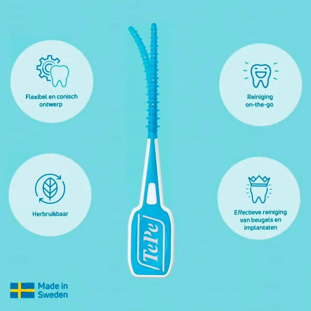 Als je ook tussen je tanden echt goed wilt reinigen zijn TePe Easypick Interdentale Borsteltjes iets voor jou. Ze hebben een flexibele pick met siliconen coating voor een gemakkelijke en effectieve reiniging tussen je tanden.