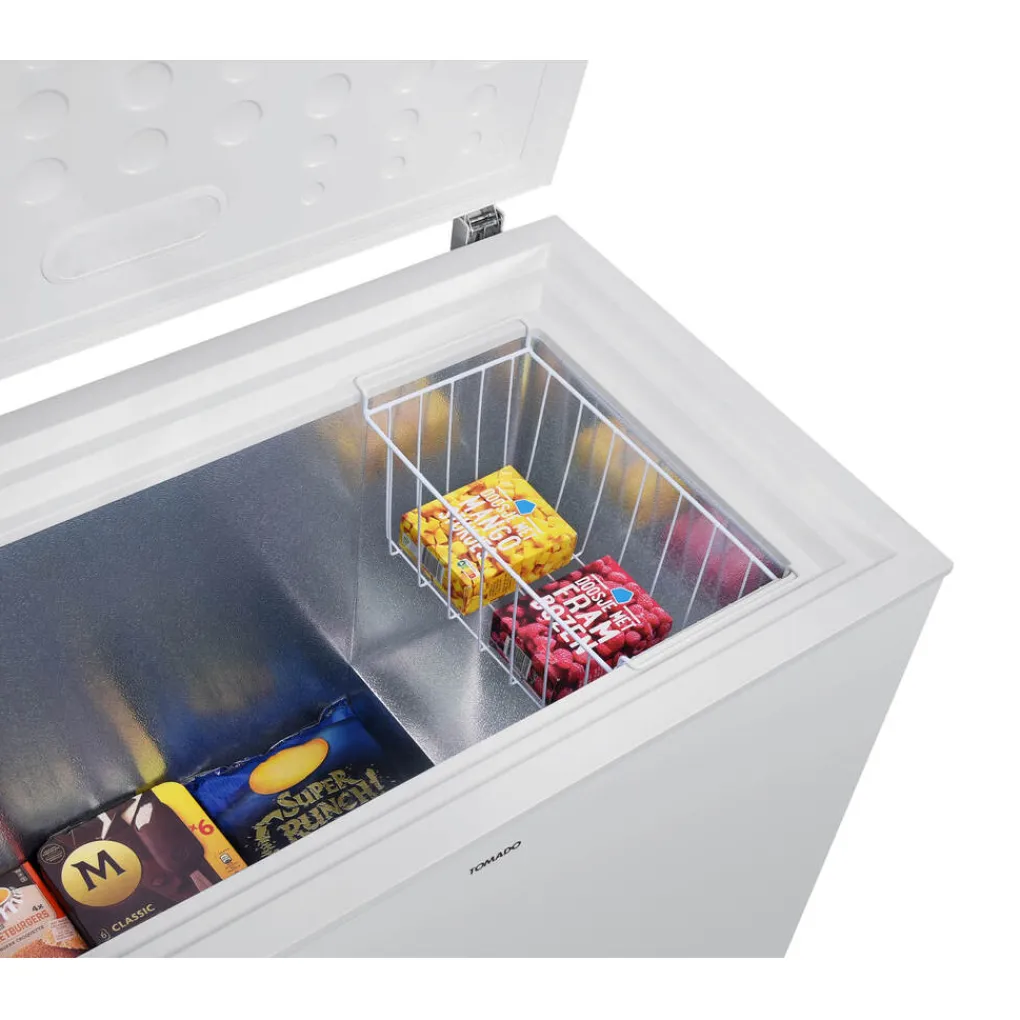 De vrieskist is voorzien van een strak en compact design. Aan de voorkant van de vriezer vind je de digitale thermostaat. Hiermee kan je de gewenste temperatuur van de vrieskist instellen. De vrieskist gaat via de deksel aan de bovenkant open. De vrieskist is voorzien van een handige uitneembare opbergkorf. De opbergkorf hang je boven in de vrieskist, waardoor je goed bij de etenswaren kunt. Dankzij de handige binnenverlichting in de klep zie je precies wat er in de vrieskist ligt