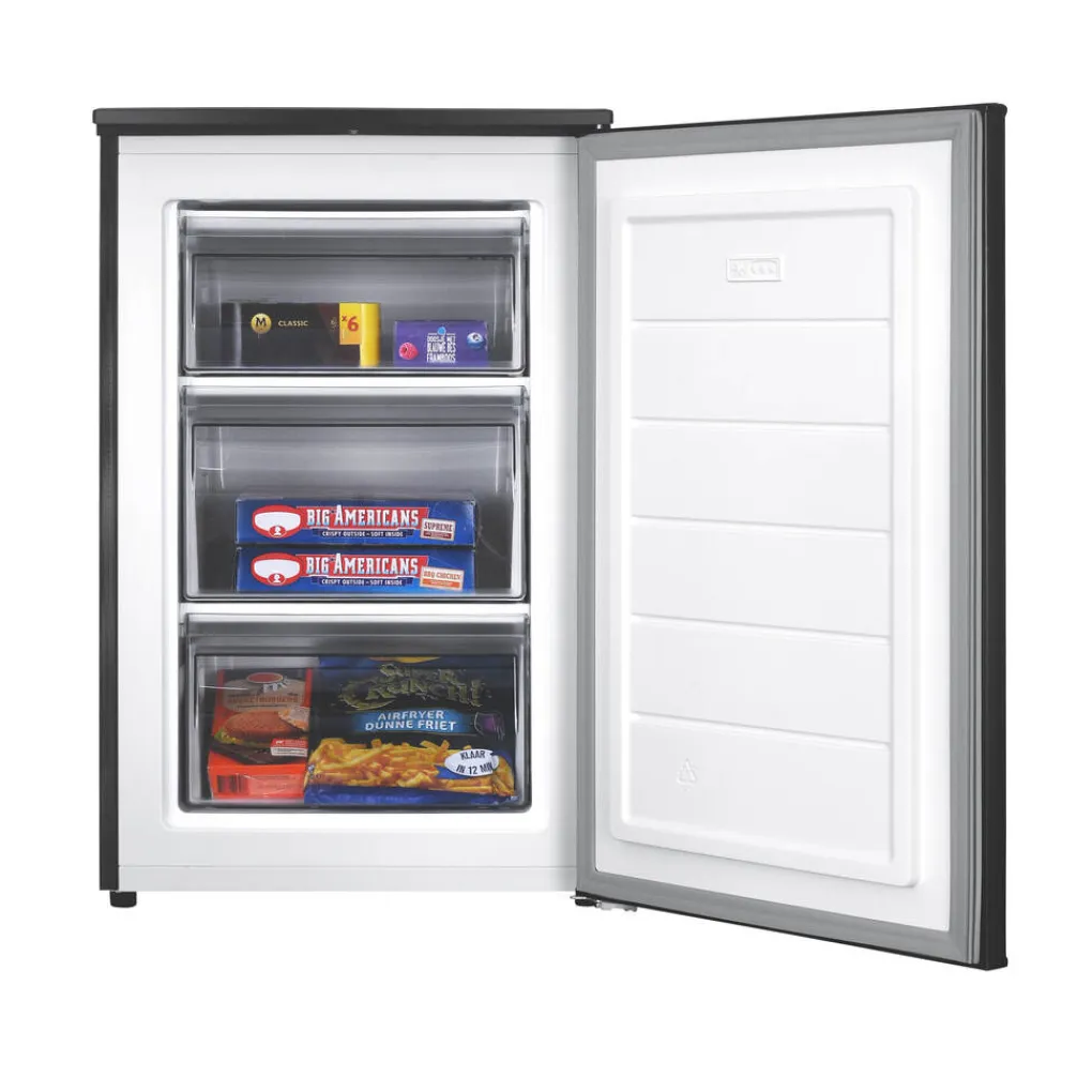 Deze vriezer heeft een ruime opbergruimte met een inhoud van 87 liter. Dankzij de drie vriesvakken kan je zelf bepalen welke producten waar liggen. Deze vriezer heeft een 4 sterren invriesvermogen van 4,4 kg/24u, hierdoor zijn jouw etenswaren ontzettend snel ingevroren.