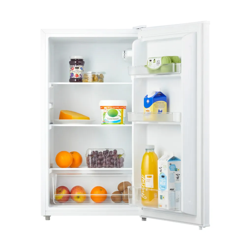 De Tomado TLT4702W is een vrijstaande koelkast met een totale netto inhoud van 94 liter. Dit is voldoende koelruimte voor huishoudens van 1 tot 3 personen. De inhoud van 94 liter zorgt ervoor dat jij al jouw boodschappen er keurig in kwijt kan. De koelkast is voorzien van 3 glazen draagplateaus, 1 groentelade en 1 flessenvak in de deur. Zodra je de deur van de koelkast opent, springt de binnenverlichting aan zodat je goed zicht hebt. Dankzij het lage geluidsniveau van 39 dB hoor je nauwelijks dat hij aanstaat!