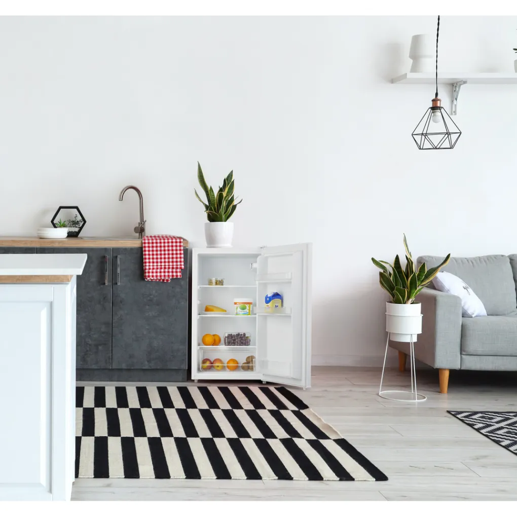 De koelkast heeft een strakke uitstraling dankzij de witte kleur in combinatie met de geïntegreerde handgreep. Hij heeft een hoogte van 86,5 cm en is hierdoor ideaal om andere keukenapparaten zoals een magnetron of bakoven op te plaatsen.