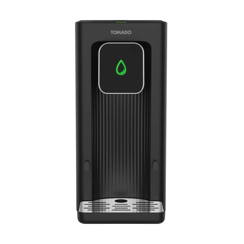 WaterfilterDe heetwaterdispenser is voorzien van een waterfilter. Deze waterfilter verwijdert onzuiverheden uit het water. Het filter heeft een capaciteit om maximaal 150 liter water te reinigen. Het advies is dan ook om na 150 liter water het filter te vervangen. Ondanks het gebruik van een waterfilter is het nodig om het apparaat regelmatig te ontkalken. Na elke 10 gebruiksuren begint het groene indicatielampje te knipperen om je te herinneren aan het ontkalken. Het waterfilter is los te verkrijgen bij Tomado.