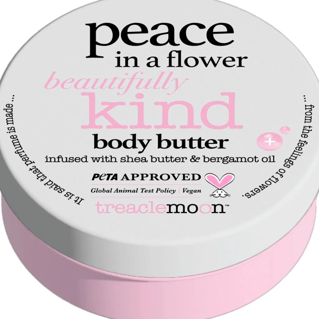 De Treaclemoon Peace In A Flower Bodybutter is een romige crème die je huid omhult in de omhelzing van een magische bloementuin en een vleugje betovering brengt.