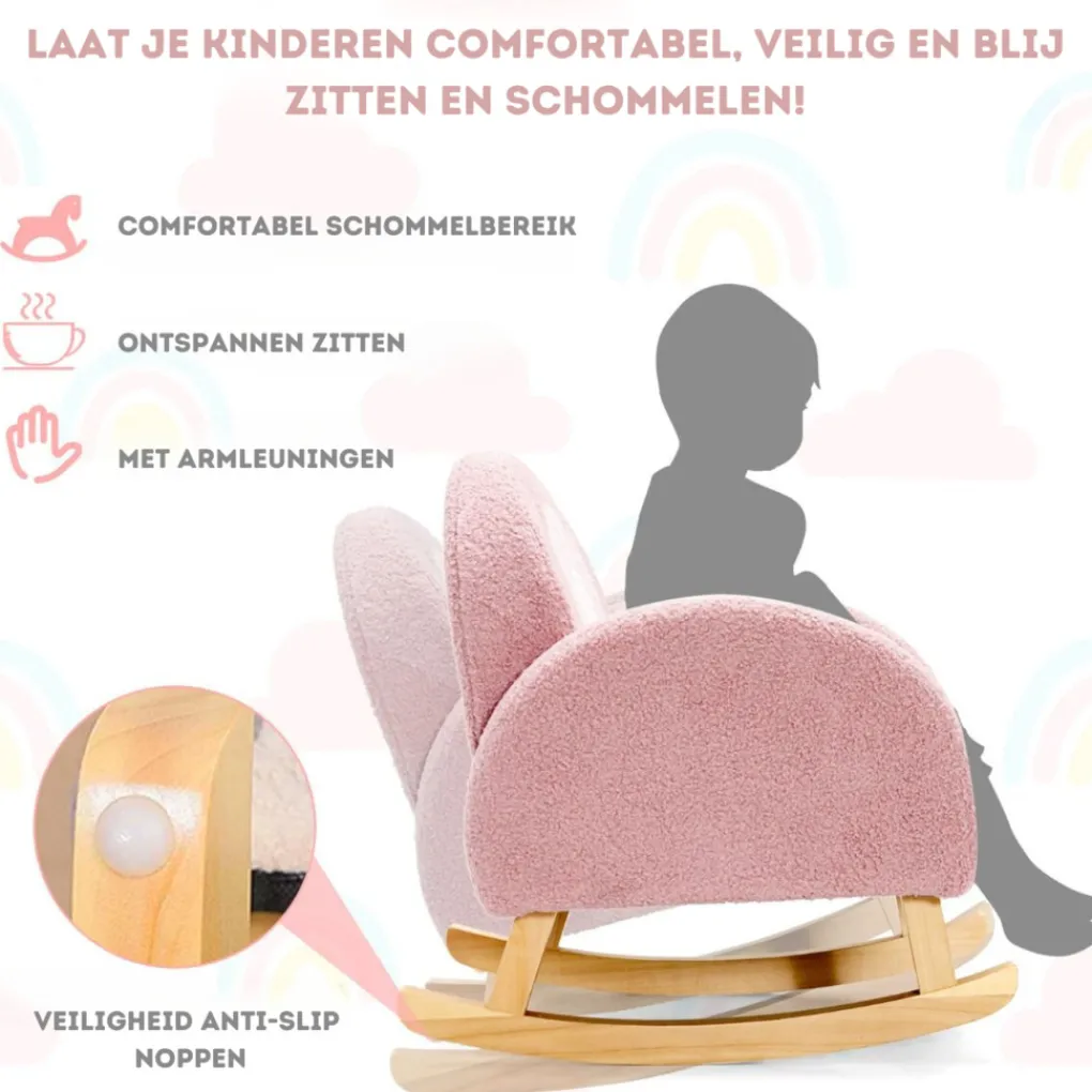 2. Dankzij het zachte teddy stof en ergonomische design is deze schommelstoel super comfortabel voor jouw kleintjes.