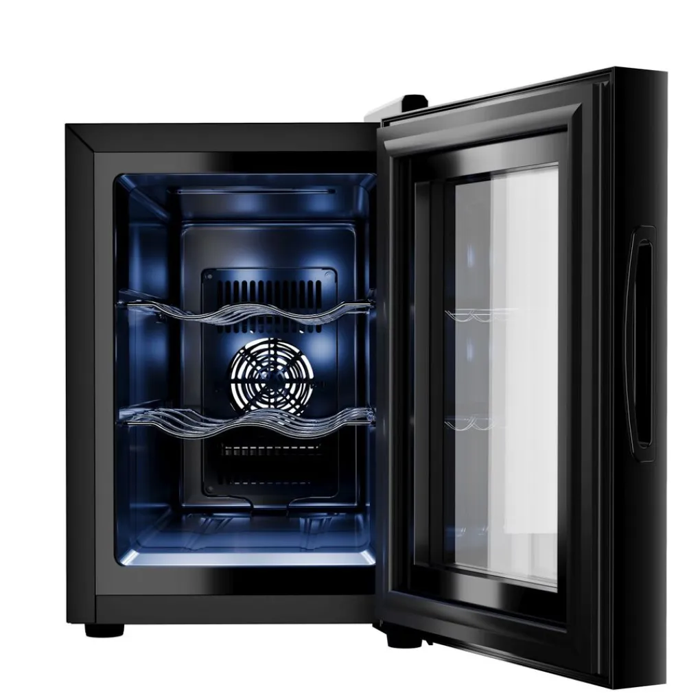 De Tristar Drankkoeler is erg gebruiksvriendelijk en compleet. De Drankkoeler biedt in totaal ruimte voor 6 flessen en heeft een inhoud van 17 liter. Hij is voorzien van drie chromen rekken, waardoor je flessen stabiel blijven liggen. De verstelbare poten zorgen ervoor dat je de drankkoeler altijd eenvoudig af kunt stellen.