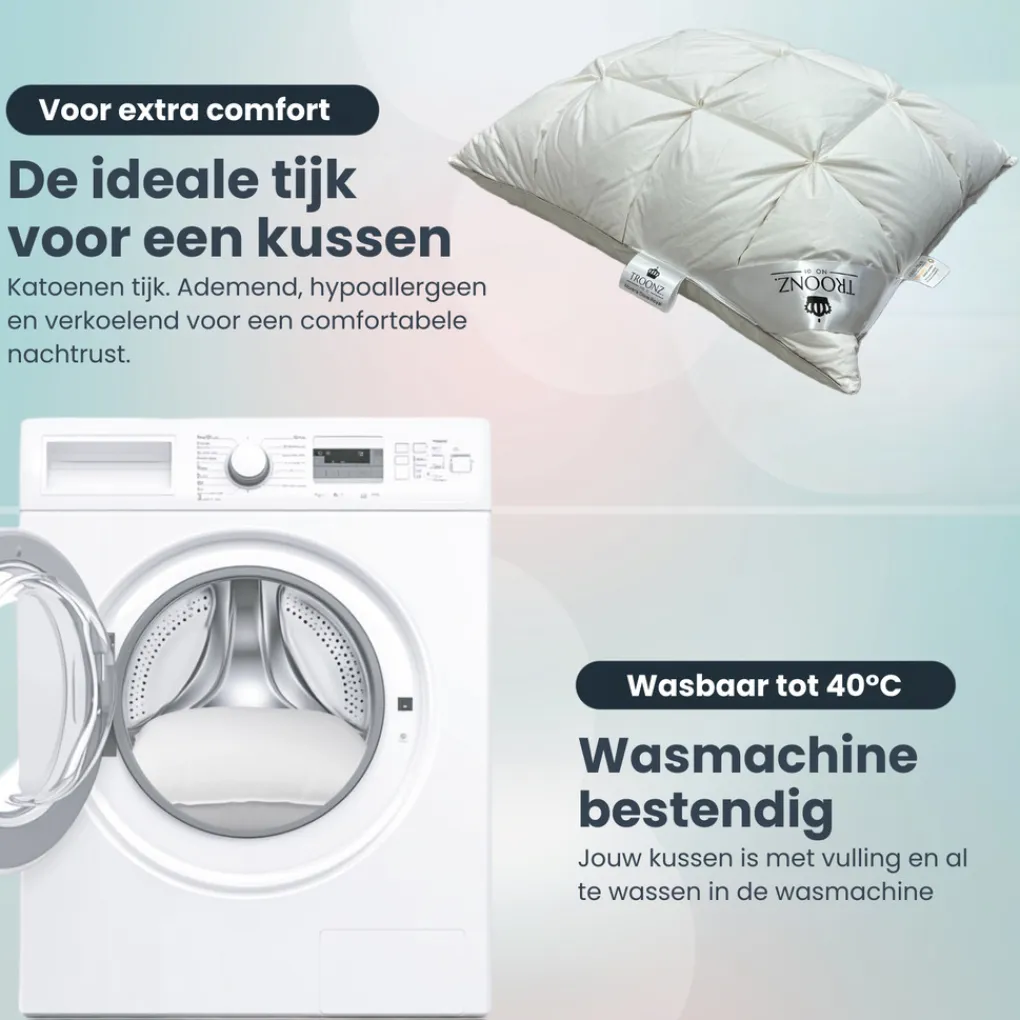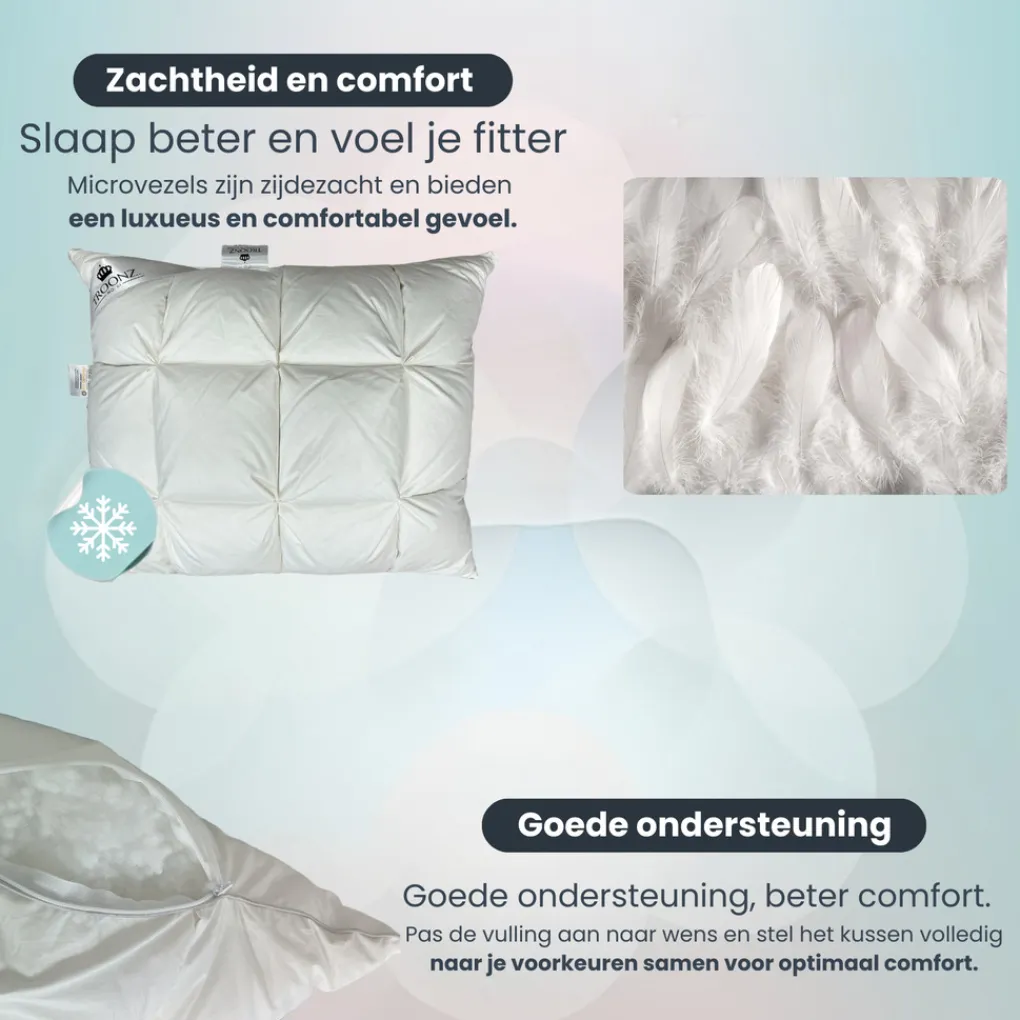 Dit dons gevulde kussen van Troonz biedt ultiem ergonomisch comfort, ideaal voor een ontspannen nachtrust.
