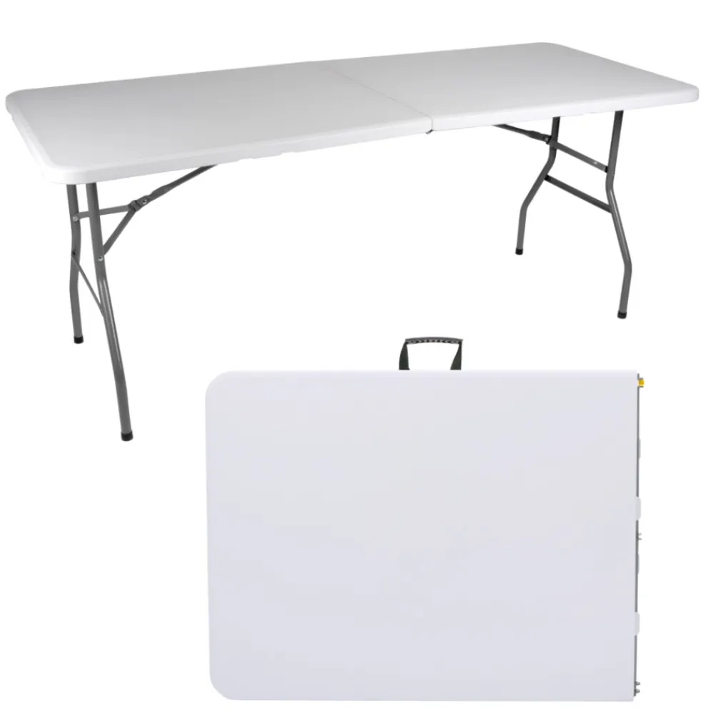 Of je nu een plooitafel zoekt voor thuisgebruik of een vouwtafel nodig hebt voor evenementen: deze opklapbare tafel rechthoekig biedt de perfecte combinatie van gemak, stevigheid en draagbaarheid.Product specificaties Opvouwbare Tafel 180x74x74 cm
