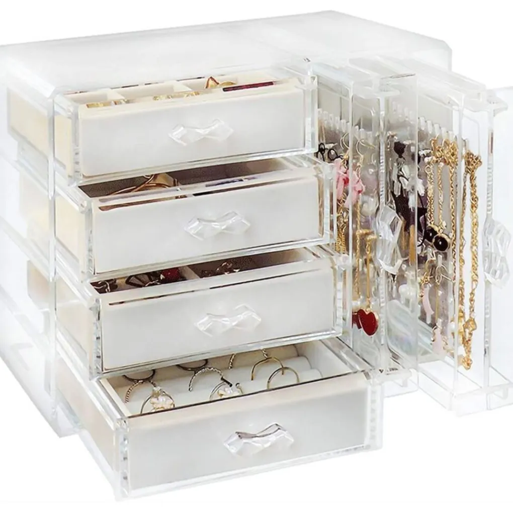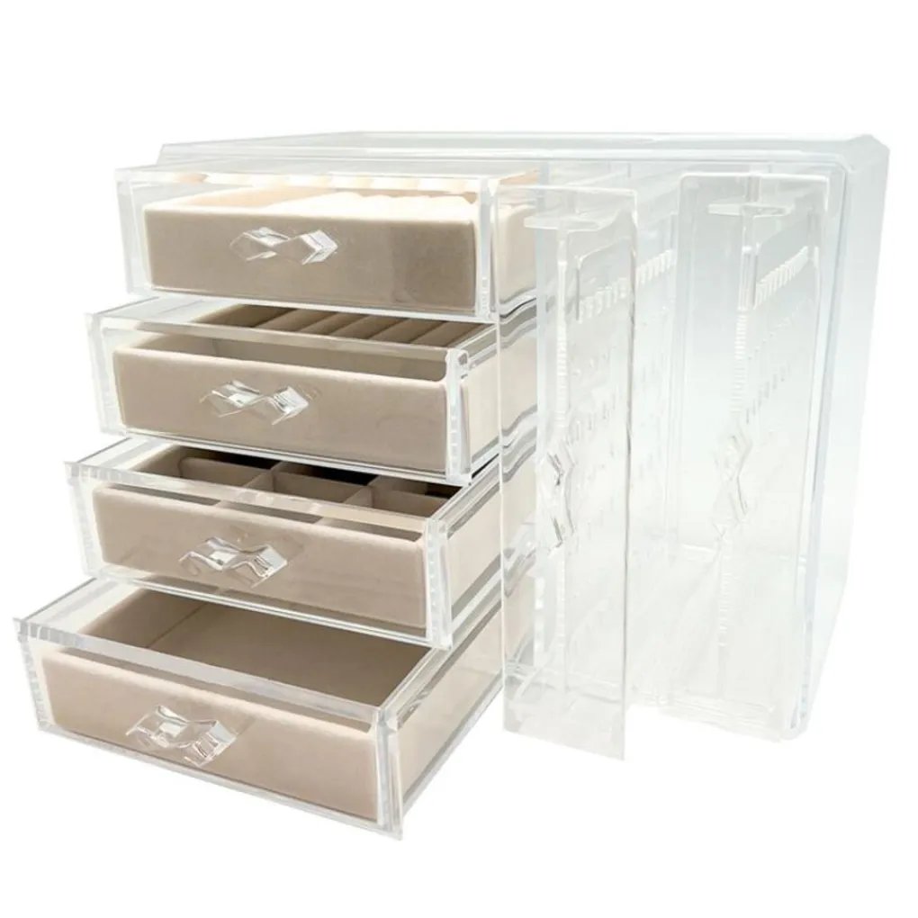 - 4 ruime laden: Geschikt voor ringen, armbanden, oorbellen en kettingen.