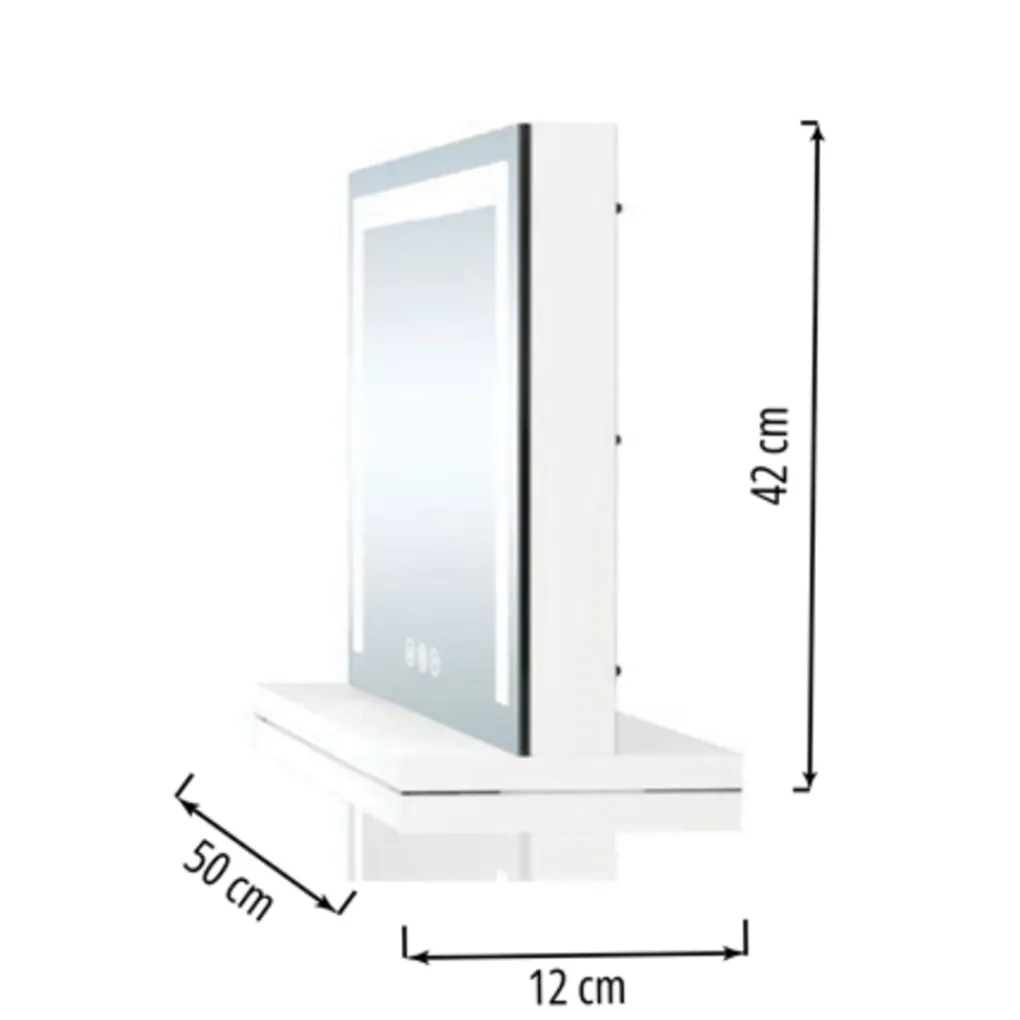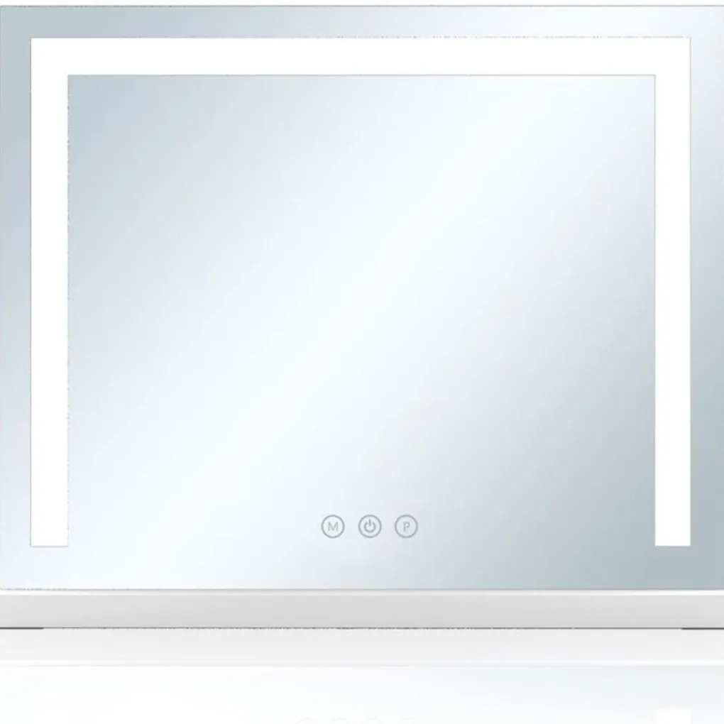 De smart-touch bediening van de spiegel is ontworpen voor intuïtief gebruik en geavanceerde aanpassing. Met een simpele druk op de aan/uit-sensor wordt het licht van de spiegel geactiveerd en kun je meteen genieten van de heldere verlichting door de ingebouwde LED-panelen. Als je de helderheid wilt aanpassen naar een meer gedempte gloed om een ontspannen sfeer te creëren of heldere verlichting nodig hebt tijdens je schoonheidsroutine, kun je eenvoudig de P-knop ingedrukt houden en de lichtintensiteit afstellen op het gewenste niveau.