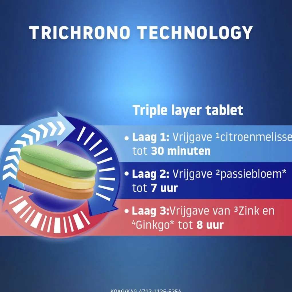 • Triple layer tablet: geeft de ingrediënten in drie fases gedurende de nacht af