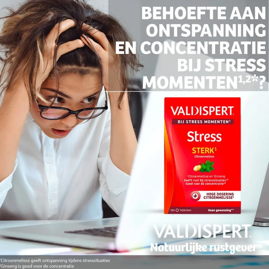 Valdispert Stress Moments Sterk Tabletten zorgen voor rust en ontspanning bij zenuwen en stresssituaties én ondersteunen de concentratie*. De tabletten geven geen gewenning.