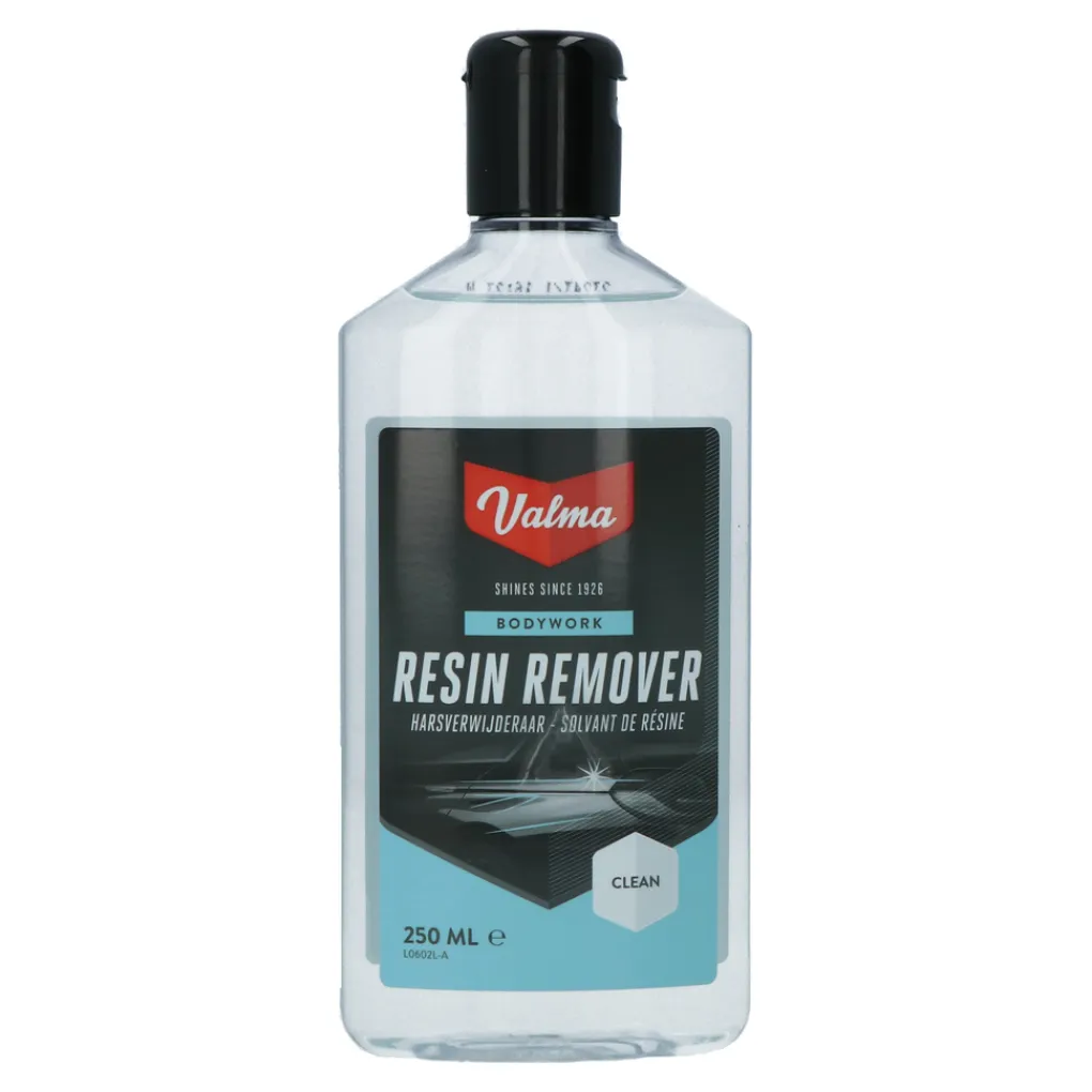 Valma Resin Remover is een kleine krachpatser die moeiteloos harsvlekken verwijdert. De harsverwijderaar is te gebruiken op glas, kunststof en lakwerk. De verwijderaar zit in een handige flacon met een inhoud van 250ml.