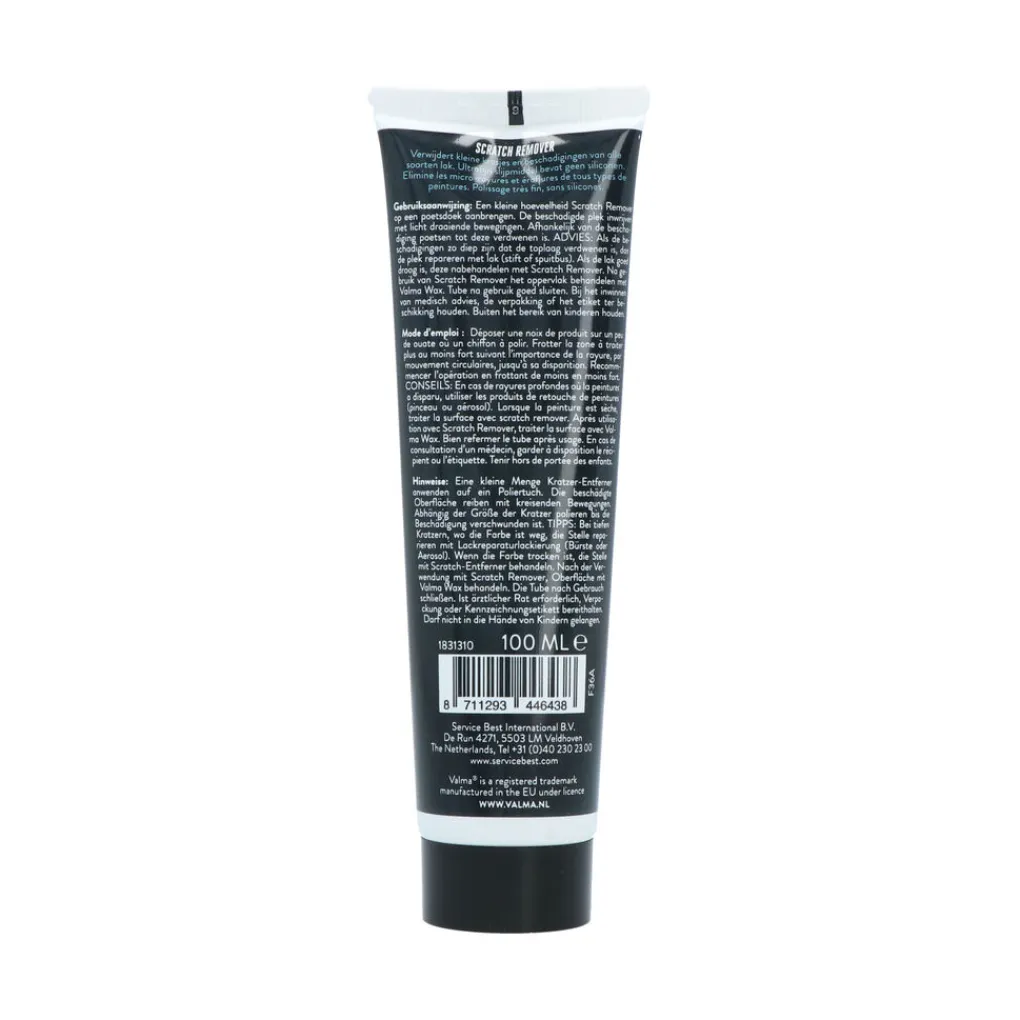 Valma Scratch Remover is verwijdert kleine krasjes en beschadigingen. Scratch remover heeft een zeer fijne, egaliserende werking en is gemakkelijk in gebruik. De krasverwijderaar is geschikt voor alle soorten lak en is vrij van siliconen. Inhoud 100ml.