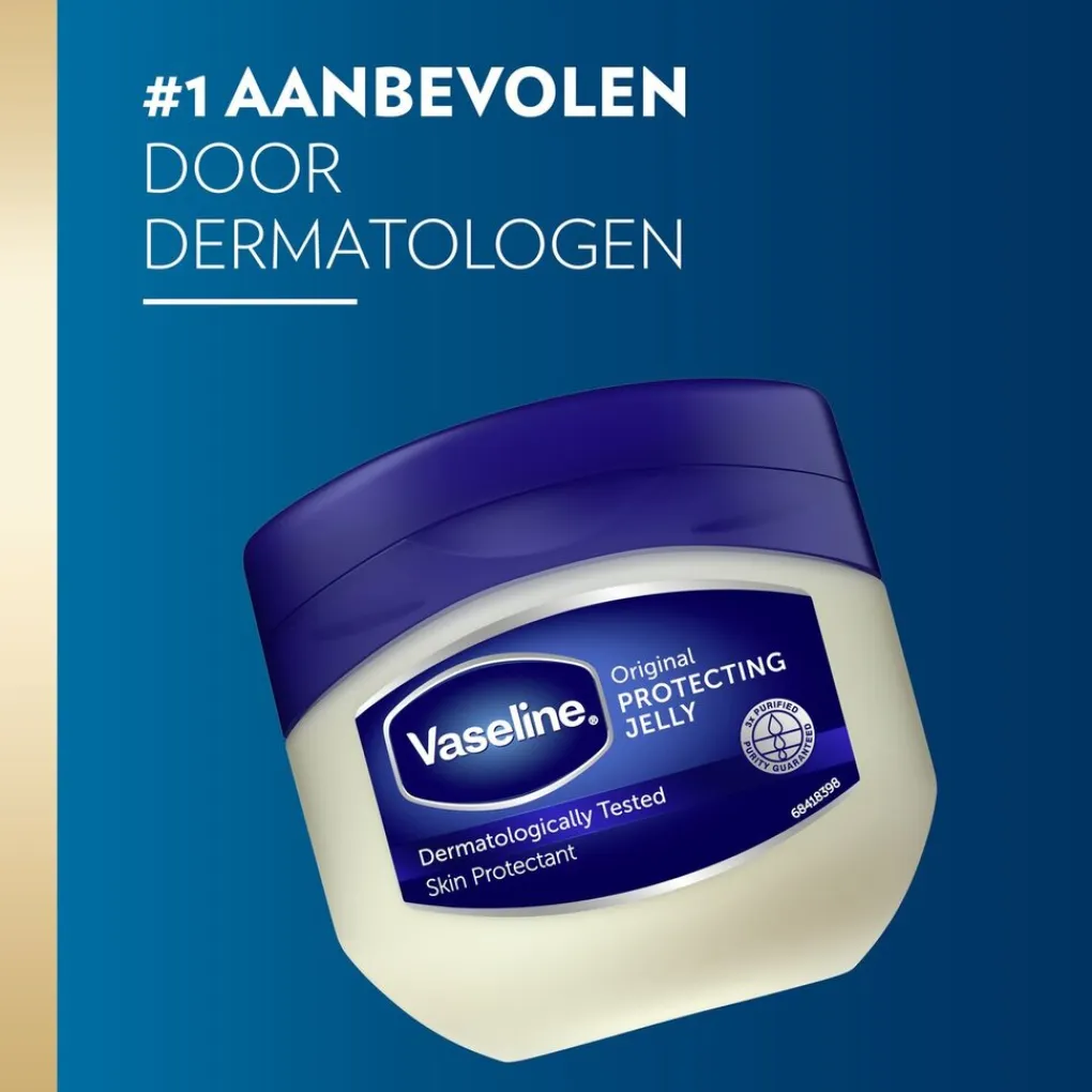 Vaseline Original Petroleum Jelly is dermatologisch getest, irriteert niet en is daarom zeer geschikt voor gebruik op geïrriteerde ruwe en droge huid. Deze jelly helpt het vocht in je huid aan te vullen, zodat deze zichzelf herstelt. Vaseline legt namelijk een beschermend laagje op je huid dat vochtverlies helpt voorkomen. De jelly werkt als een vochtinbrengende crème voor de droge huid, als lippenbalsem of zelfs als babycrème.