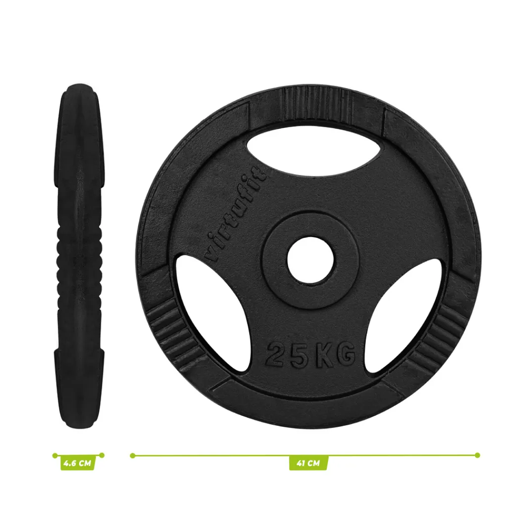 Deze halterschijf is vervaardigd uit hoogwaardig en stevig gietijzer, wat het tot een slijtvast materiaal maakt. Dit garandeert een lange levensduur en betrouwbare prestaties. Richt je volledig op je training en behaal indrukwekkende resultaten.