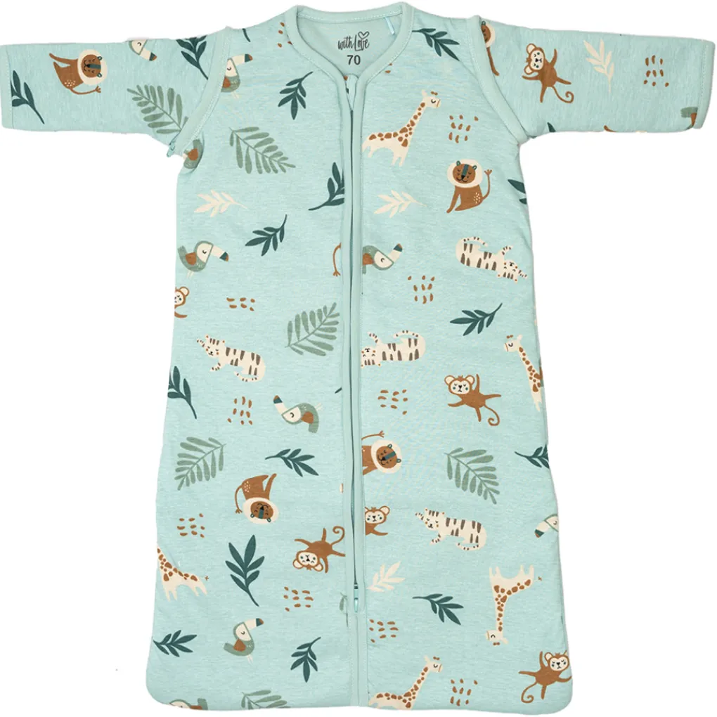 Deze leuke slaapzak is van het merk With Love. De fijne slaapzak is gemaakt van jersey katoen. De stof van de slaapzak is slijtvast en soepel. De mouwen van de slaapzak zijn afritsbaar.