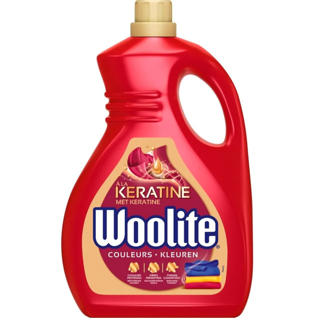 Woolite Kleuren Vloeibaar Wasmiddel met keratine reinigt en brengt de glans terug op al je stoffen, maakt de vezels glad en houdt je kleding langer nieuw.