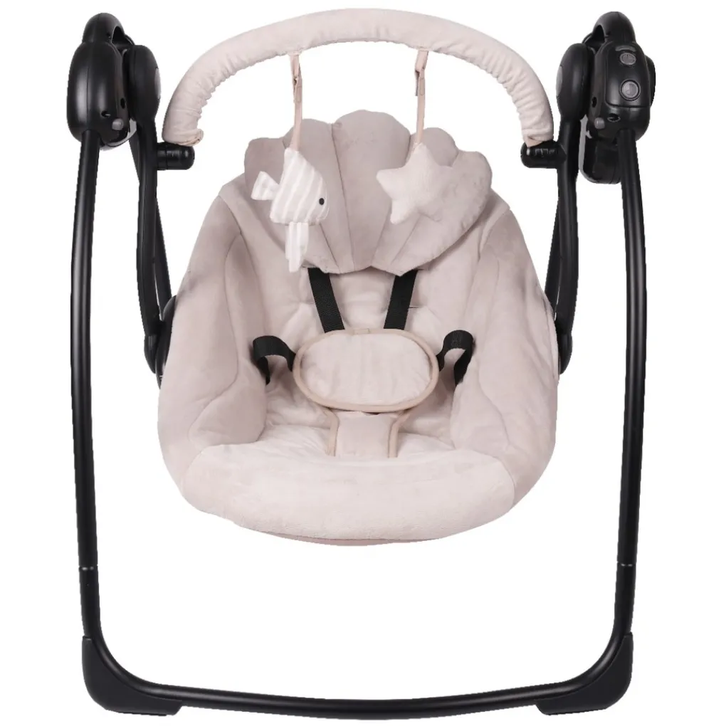 De baby swing is uitgerust met een verstelbare 5-punts gordel. Hierdoor zit je kindje altijd veilig vast tijdens het schommelen.