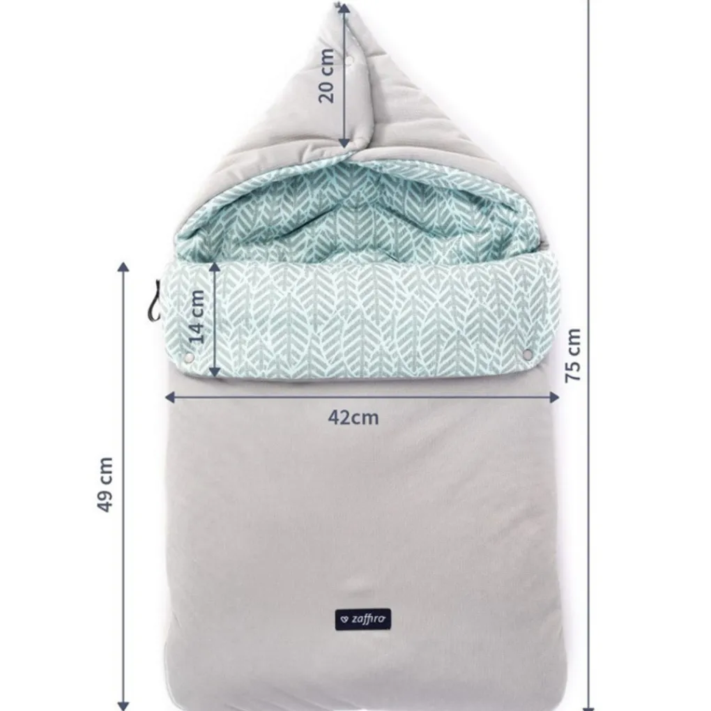 De voetenzak geeft je kleine het gevoel van comfort en veiligheid. De voetenzak is gemaakt van anti-allergische stof en zowel de binnen- als buitenkant van de voetenzak is zijn 100% katoen. De vulling is van 100% polyester. Het wordt aangeraden de voetenzak met de hand te wassen.