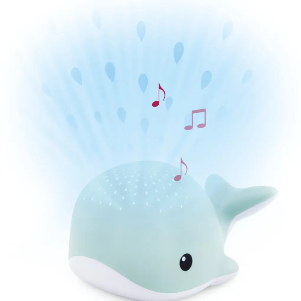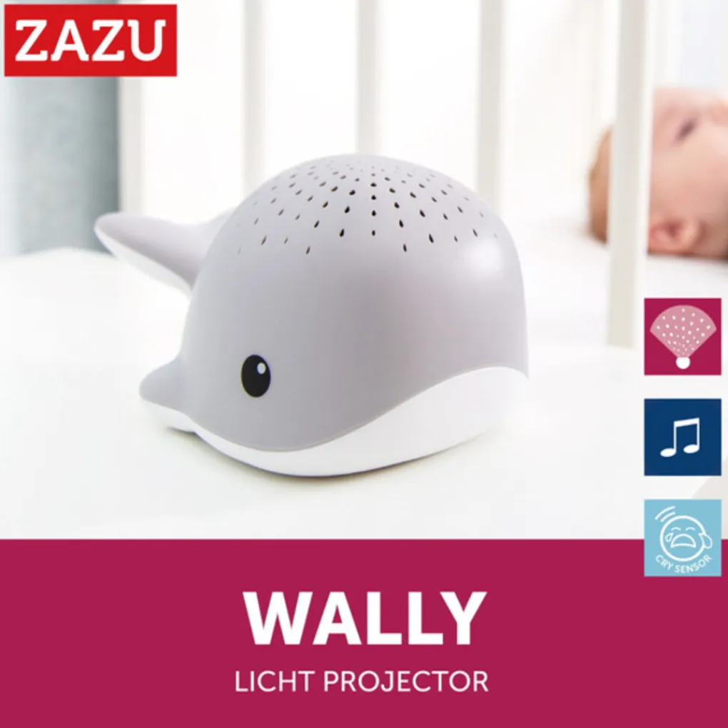 Wally projecteert waterdruppels in verschillende kleuren (blauw, groen, rood óf regenboogkleuren) tegen het plafond. Daarnaast speelt Wally drie verschillende melodieën, namelijk oceaan geluidjes, hartslag én slaapliedjes. Altijd een kleurtje en een geluidje dat bij jouw kindje past.